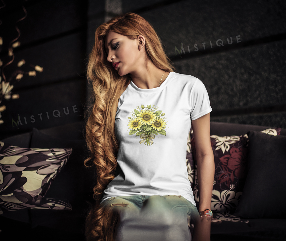 Majica sa suncokretima savršen je izbor za sve koje vole cvjetne motive, ali ne žele ništa prenapadno. Ovaj dizajn spaja toplinu suncokreta s elegantnim, čistim izgledom koji se lako nosi u raznim prilikama. Motiv djeluje ženstveno, uredno i dovoljno upečatljivo da privuče pažnju, ali bez viška detalja koji bi opteretili cijeli izgled.
