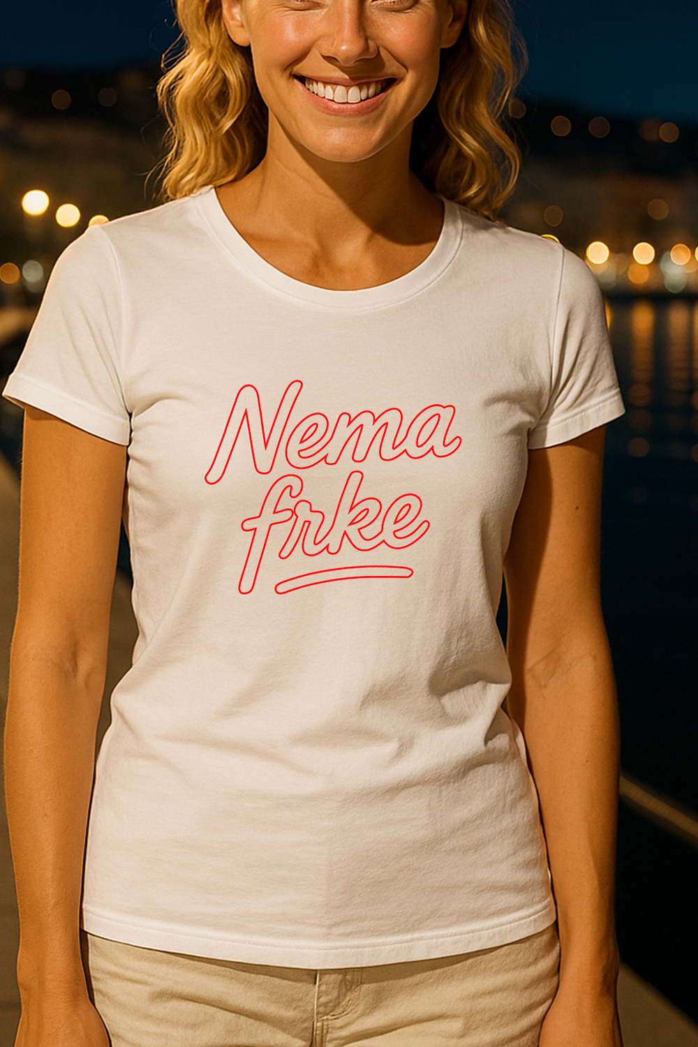 majica s natpisom “Nema frke” – jednostavan, minimalistički stil.