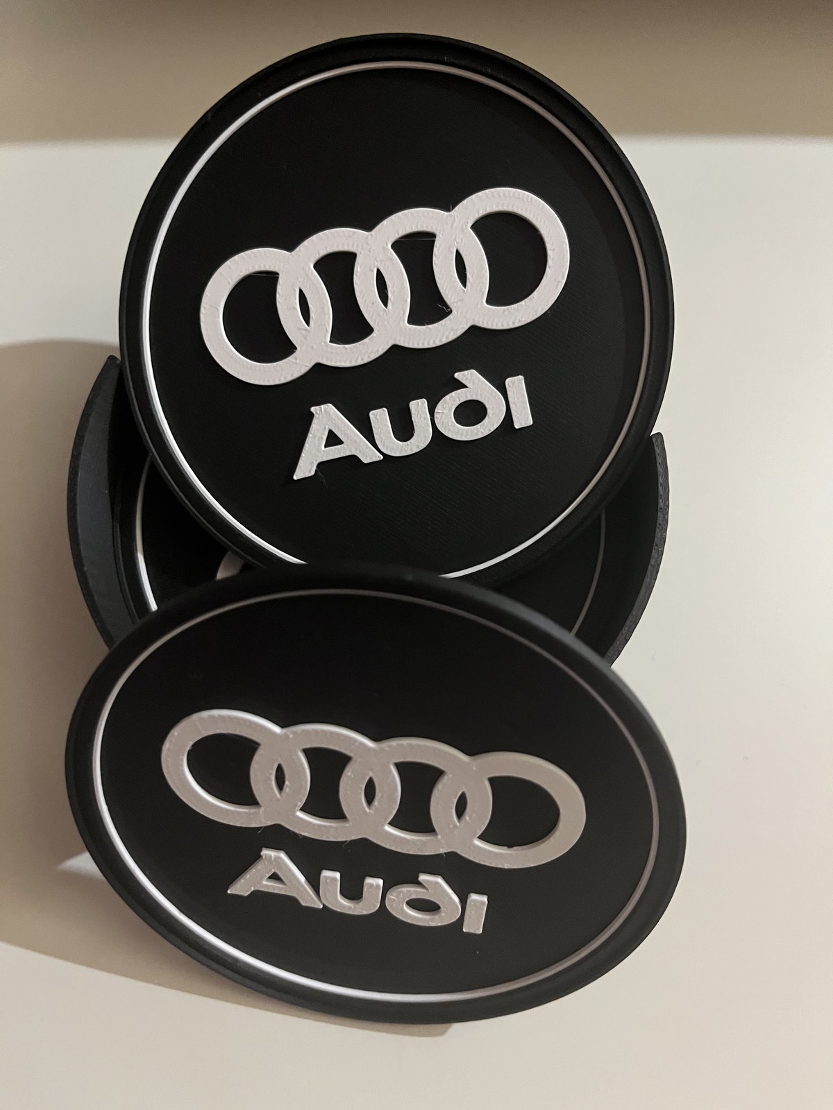 Set od 6 3D podmetača za čaše s Audi motivom, uz po želji, pripadajućim postoljem za uredno spremanje. Minimalistički dizajn, čiste linije i praktična upotreba za dom, ured ili poklon.